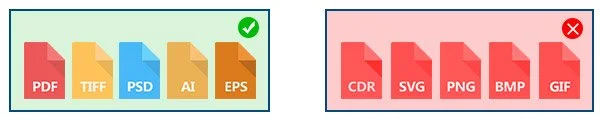2. Форматы файлов которые принимаем: pdf, tiff, psd, ai, eps.