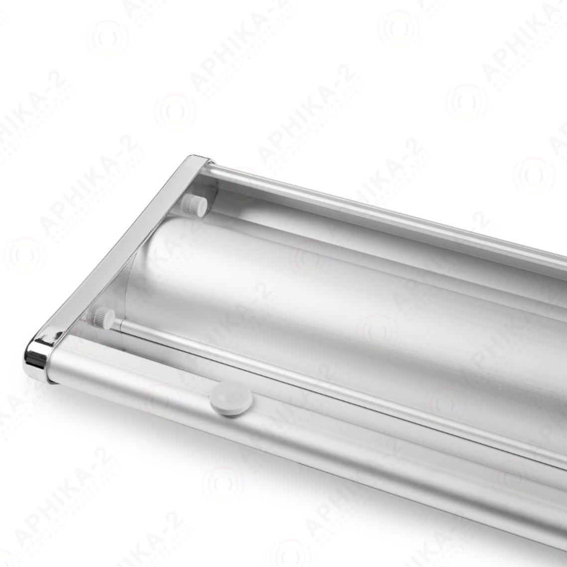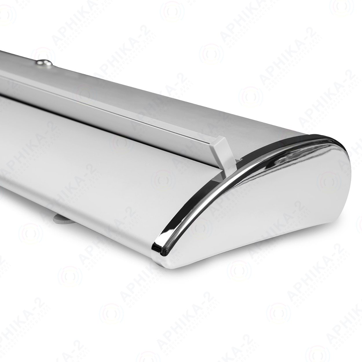 Ролл-ап капля изготовлен из анодированного алюминия матового сребристого цвета, и имеет боковые хромовые зеркальные вставки, которые напоминают каплю, от этого и такое название у данного рекламного стенда.