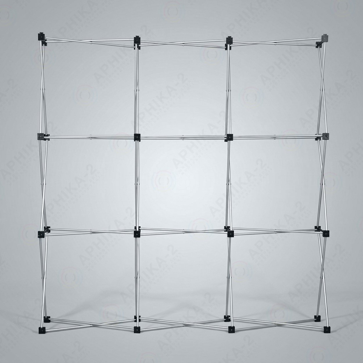 Ми виготовляємо і продаємо по всій Україні поп-ап стенд прямий 3х3. Pop-up стенд прямий 3х3 – система, що складається з блоків, складається з алюмінієвих стрижнів, об’єднаних між собою стикувальними вузлами.