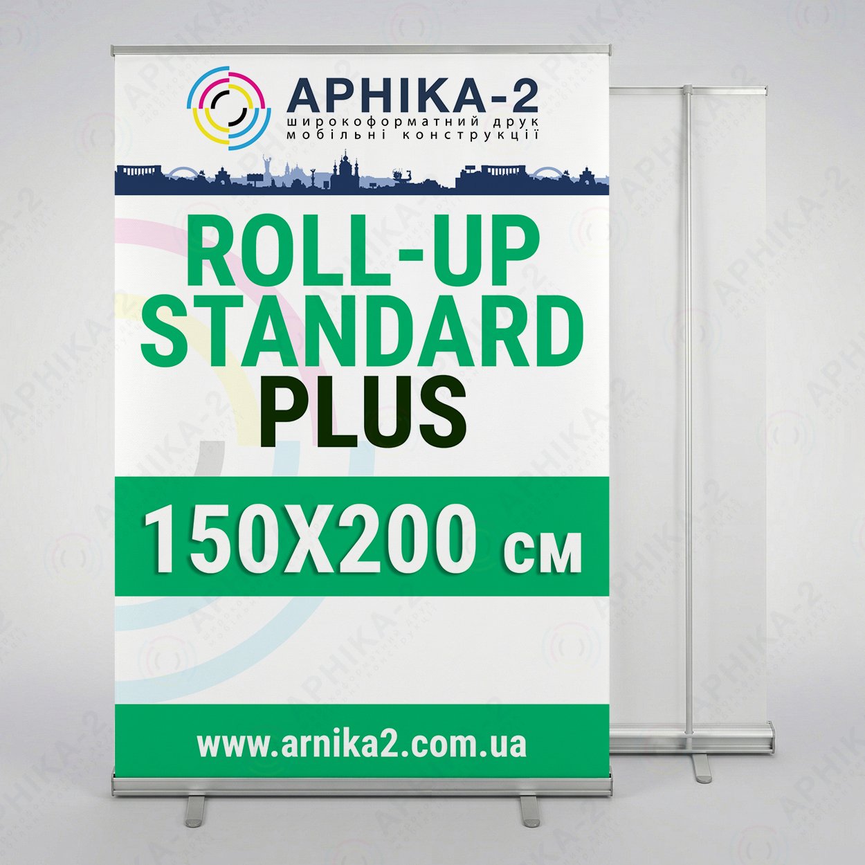 Розмір конструкції рол-ап стандарт плюс 150х200 у встановленому вигляді – 150х200 см.