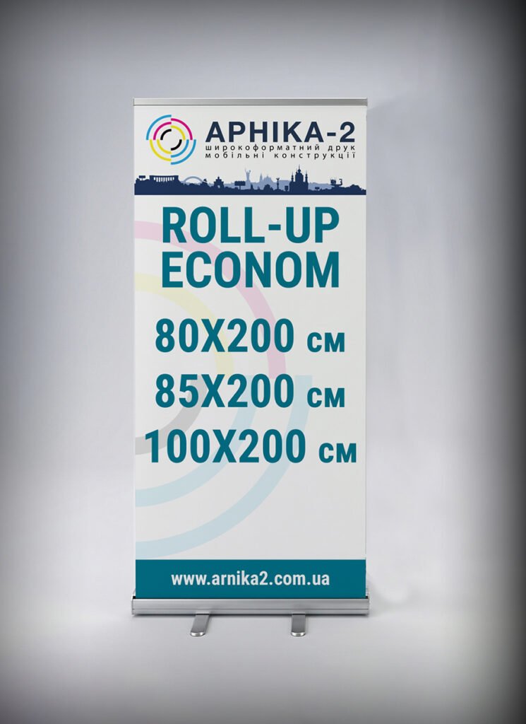 Рол-ап економ 80х200 см – бюджетний виставковий мобільний стенд, який можна купити у Києві.